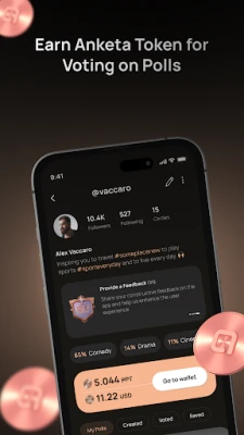 Anketa е гарант, че всеки глас ще бъде чут, като същевременно пази вашите данни сигурни и неприкосновени. Всяка дейност е прозрачно записана в блокчейн, което гарантира интегритета на информацията. От брандове, търсещи искрена обратна връзка, през изследователи, анализиращи общественото мнение, до правителства, проучващи настроенията по политики – Anketa е ценен инструмент. Дори обикновените потребители, които искат да задават или отговарят на важни въпроси, ще намерят своето място тук. Присъединете се към Anketa и станете част от световно движение за по-честен и базиран на данни диалог. Открийте, споделете и формирайте най-автентичните мнения в света с Anketa.