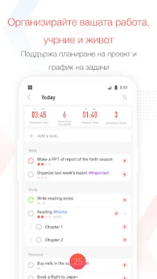 Focus To-Do е научно обосновано приложение, което комбинира Помодоро Таймер с управление на задачи. То е създадено да ви мотивира да запазите фокус и да изпълните успешно своите цели, повишавайки продуктивността ви.