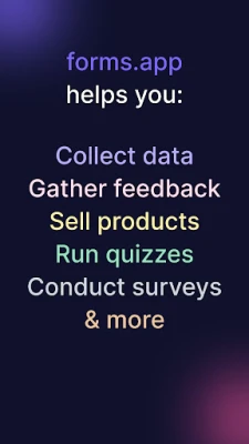 forms.app е интуитивен онлайн дизайнер за създаване на формуляри и проучвания. Проектирайте лесно анкети и форми за минути, споделяйте ги през различни платформи и получавайте бързи отговори без усилие.