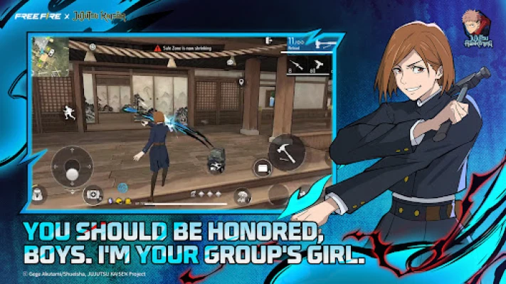 "Free Fire x JUJUTSU KAISEN" е тук! Изживейте новото сътрудничество в Кралска битка, изследвайки Гимназия по джуджуцу в стил FF. Срещнете емблематични герои като Юджи Итадори и Сатору Годжо. Овладейте Прокълната енергия и отприщете мощни джуджуцу техники, за да оцелеете в тази епична битка.