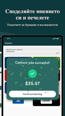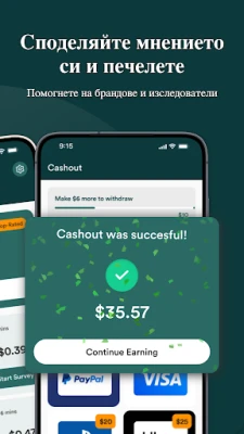 Печеленето с MultiPolls е едновременно приятно и гъвкаво. Когато сте готови да осребрите своите печалби, процесът е прост и ясен. Можете удобно да изтеглите натрупаните суми директно във вашия PayPal акаунт, давайки ви свободата да ги използвате както пожелаете. Като алтернатива, имате възможност да заявите карти за подаръци от редица популярни търговци на дребно, което ви позволява да се поглезите с нещо специално. Благодарение на нашата разширяваща се мрежа от изследователски партньорства, постоянно добавяме нови проучвания от водещи марки, компании и университети, осигурявайки непрекъснат поток от възможности за допълнителни доходи.