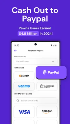 Изразете своите виждания по актуални теми и ще бъдете възнаградени с Pawns.app. Участвайте в проучвания на марки, които ценят вашето мнение, и превърнете приноса си в реални парични средства или желани ваучери. За любителите на игрите, Pawns.app предлага уникалната възможност да комбинирате хобито си с печалба, участвайки в ежедневни предизвикателства и забавни събития. Допълнете своите приходи с бързи, дневни задачи, които изискват минимално усилие, но носят максимален ефект. А когато сте готови да изтеглите заработеното, Pawns.app осигурява гъвкави опции за осребряване – от преводи през PayPal, Venmo и Visa до избор на подаръчни ваучери, гарантирайки, че вашите награди са винаги достъпни.