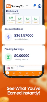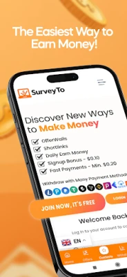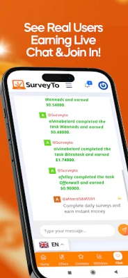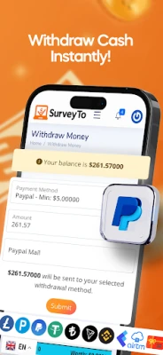 SurveyTo е проектиран с мисъл за глобалната аудитория, поддържайки 11 различни езика, което гарантира безпроблемно преживяване за потребители по целия свят. Вашата поверителност е наш основен приоритет; платформата е безопасна и защитава вашите данни, изисквайки само информация за вход в Google. Хиляди хора вече се доверяват на SurveyTo заради неговата бърза система за плащане, липса на сложни стъпки и разнообразието от забавни и ангажиращи методи за генериране на доходи, които превръщат всяка минута в ценна инвестиция. Превърнете всеки свободен момент в потенциален доход. Ако възникнат въпроси или имате нужда от съдействие, нашият денонощен екип за поддръжка е винаги на разположение на