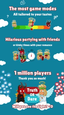 Уникална игра Истина или предизвикателство за диви и незабравими моменти. Разкрийте всичко за приятелите или любимия си човек: дали сте сред ангели или демони. Идеална за забавление и разкриване на тайни!